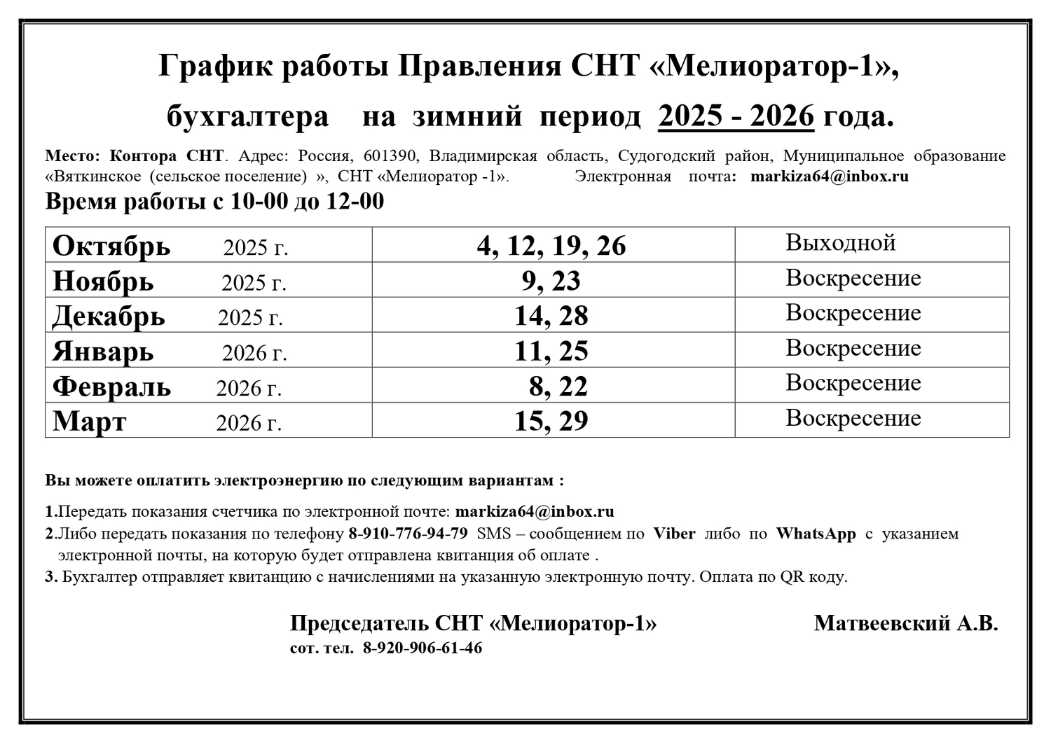 Председатель Товарищества: Матвеевский Александр Владимирович